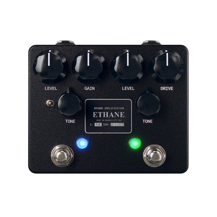 Built for players who demand the best, the Ethane Dual Overdrive fuses two of Browne Amplification’s most revered circuits—the Carbon V2 and the Gritador—into one expertly crafted pedal. Designed in Kansas City, the Ethane delivers unmatched versatility, road-ready durability, and tone that inspires. This is the overdrive for players with a passion for quality and a passion for tone.