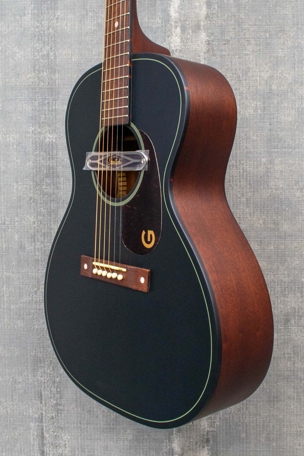 The X-braced body is crafted with select lightweight laminate tonewoods for an optimal balance of woody vintage tone and reliable durability, while the “C”-shape neck presents an inviting feel for hours of old-timey inspiration. The onboard Gretsch Deltoluxe magnetic soundhole pickup produces versatile electrified acoustic tone, providing added utility for live performance, recording, and effects pedals. Period-correct details such as a vintage-style pinned bridge, “G”-graphic pickguard, painted pinstripe purfling, 3-on-a-plate open-gear tuning machines and oversized dot fingerboard inlays combine for a nostalgic personality destined for any barnburner or jamboree.