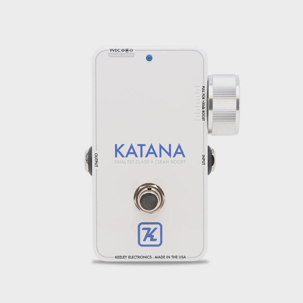 It’s the Keeley Katana Clean Boost in a familiar ‘Throwback White’ colorway!