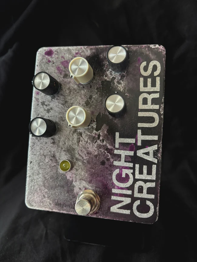 The Night Creatures is a delay pedal, technically. It’s actually 2 delay pedals in one, technically. Night Creatures walks the line between delay and reverb by layering 2 slightly different dark and filtered delay signals to create a lush and textural resonance that sits behind your playing to create depth and atmosphere. I feel like that’s probably enough tonal buzzwords for one instruction sheet. Basically I wanted a specific sound and didn’t have any pedals that made it, so I made a pedal that did. Note: This pedal runs on standard 9v center pin negative DC power ONLY (any standard “boss style” pedal power adapters will work).