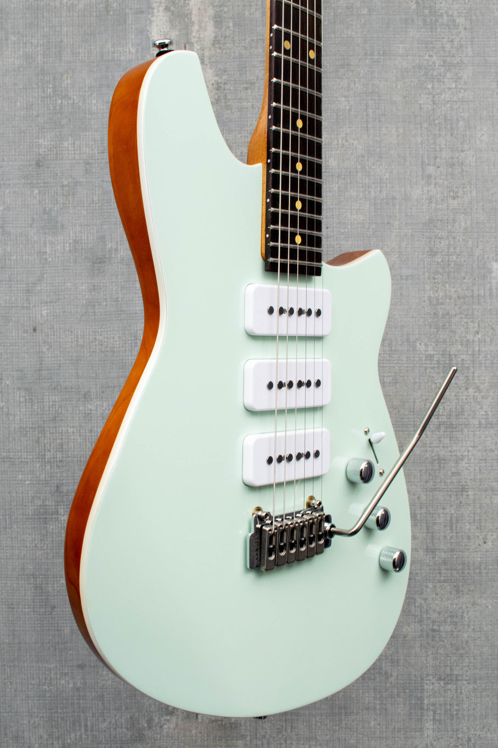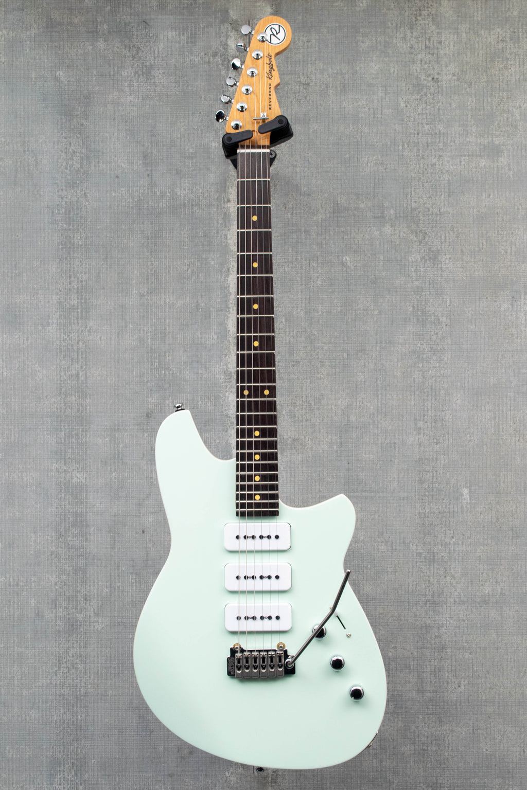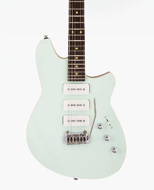 Whether you crave punchy rhythm or soaring leads, the Reverend Kingbolt 390 commands the stage. Its Steelhead P90 pickups, loaded with oversized steel poles and a powerful magnetic field, unleash a rush of harmonics, crystal clarity, and a fierce pick attack. The Wilkinson WVS50IIK tremolo keeps your tuning rock-solid, while the studio switch unlocks seven pickup combinations for endless tonal exploration. Vivid top colors ignite the senses, paired with elegant transparent brown backs. The fresh Kingbolt headstock logo signals a bold new era for Reverend. The Reverend Kingbolt 390 fuses high-octane performance with classic style, defining its unmistakable identity.