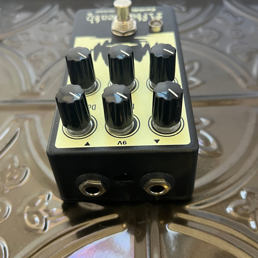 Once inside, a reflection of light from an unknown source catches your eye, and you notice a bizarre sheen on the walls of the cave. You timidly inch closer to the walls of the cave. Placing your hand gently on the cavern wall, you feel the rock move. The cave is alive! Alarmed, you emit a loud gasp, which reverberates throughout the subterranean landscape. Upon further listening, it appears as though the reverberations of your voice are in fact a swarm of short digital delays which may be used to create wild and cavernous reverbs, or scattered, short, rhythmic delays with bizarre characteristics.