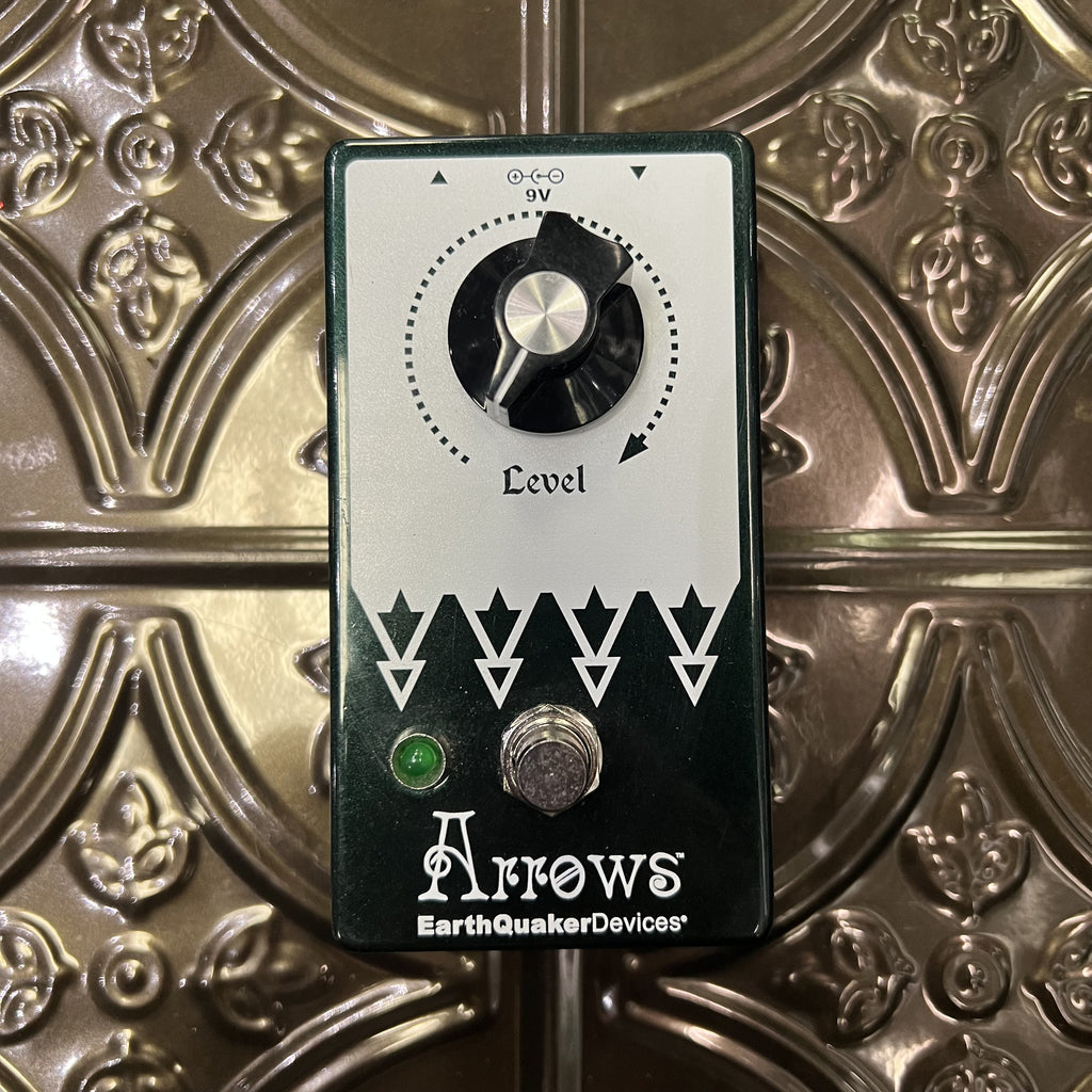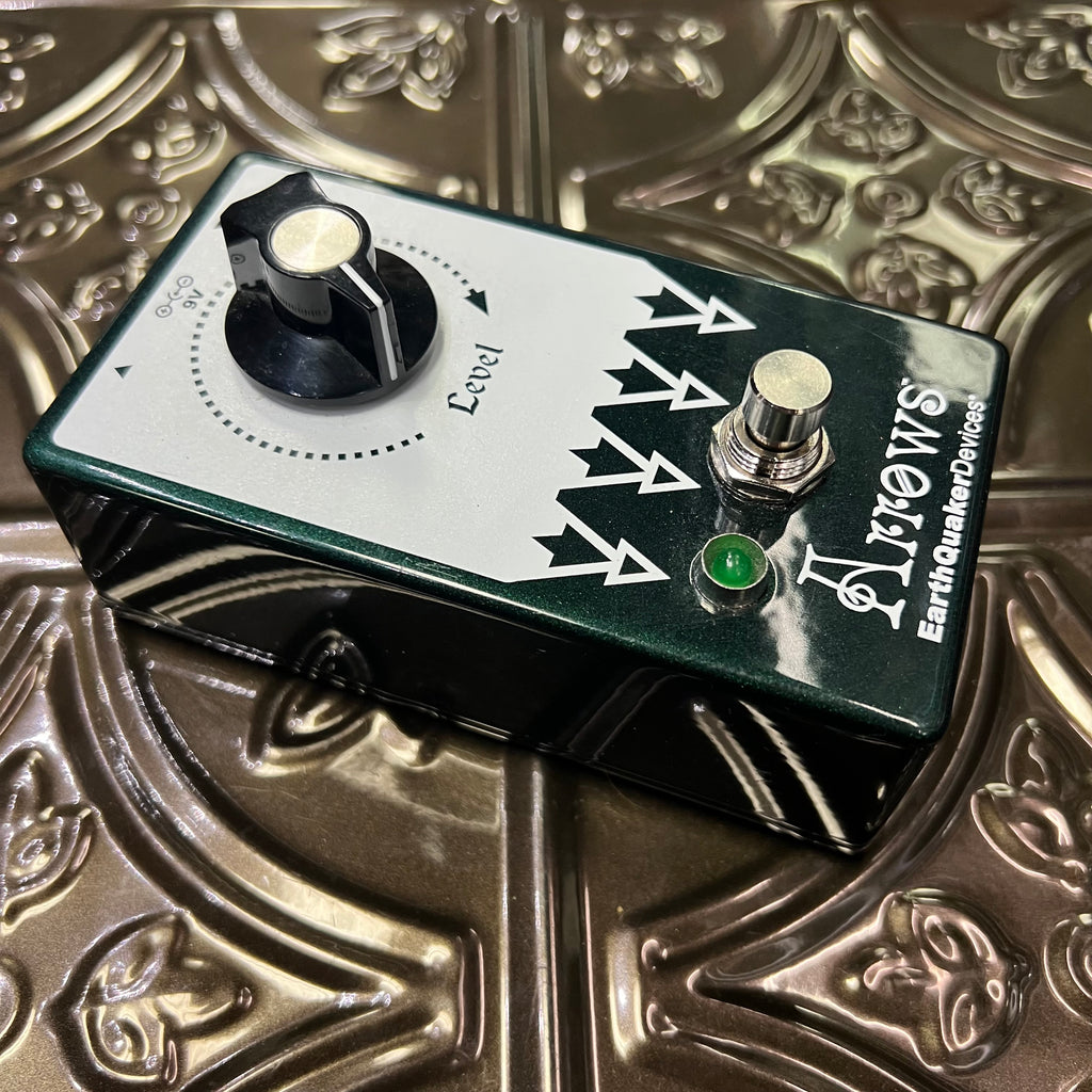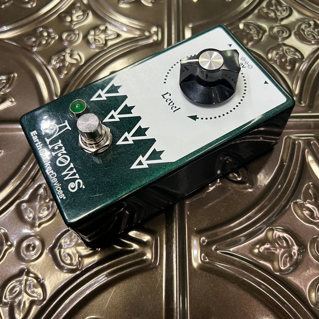 Pre-owned EarthQuaker Devices Arrows Preamp Booster, in very good condition, with original box and velcro on the bottom.