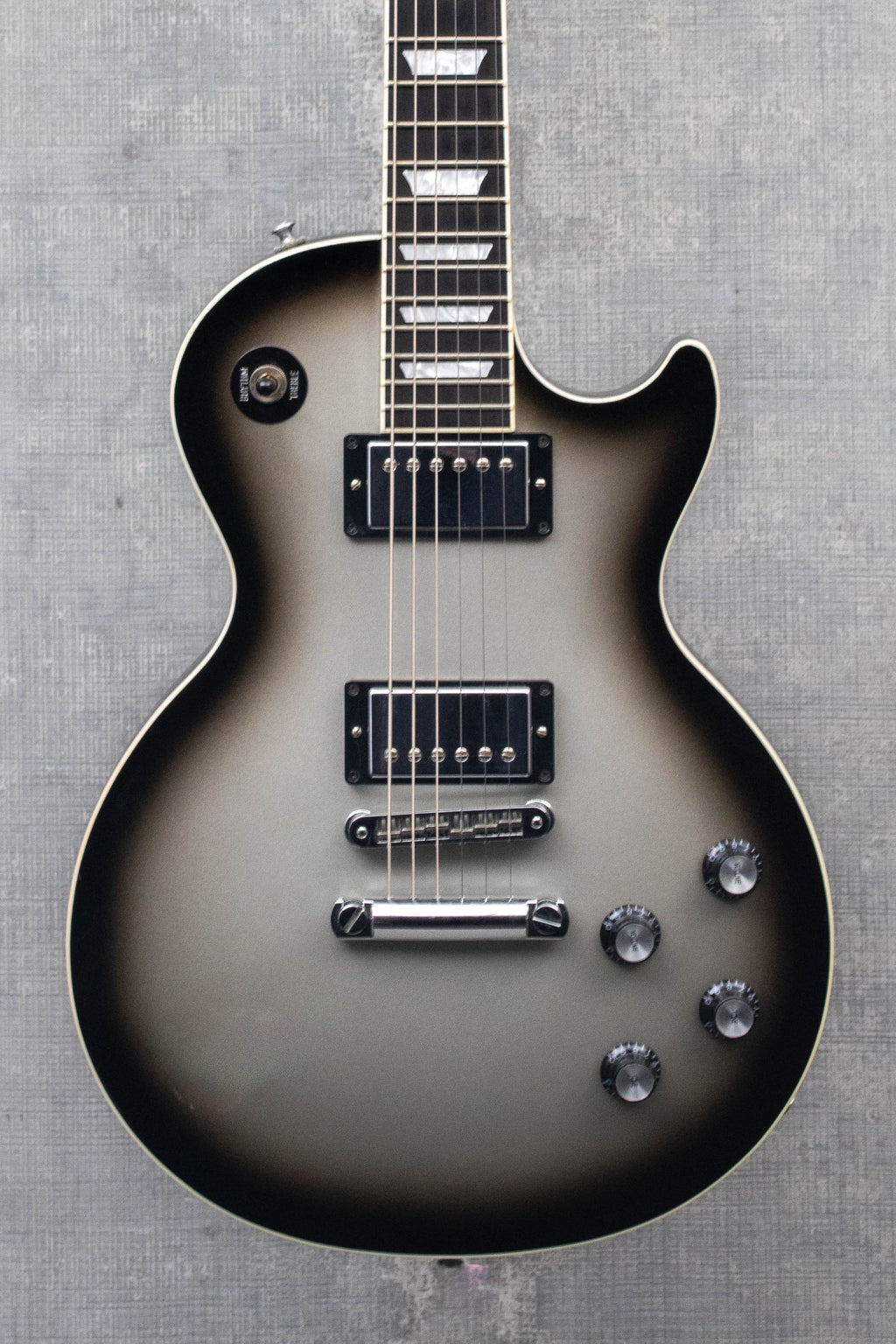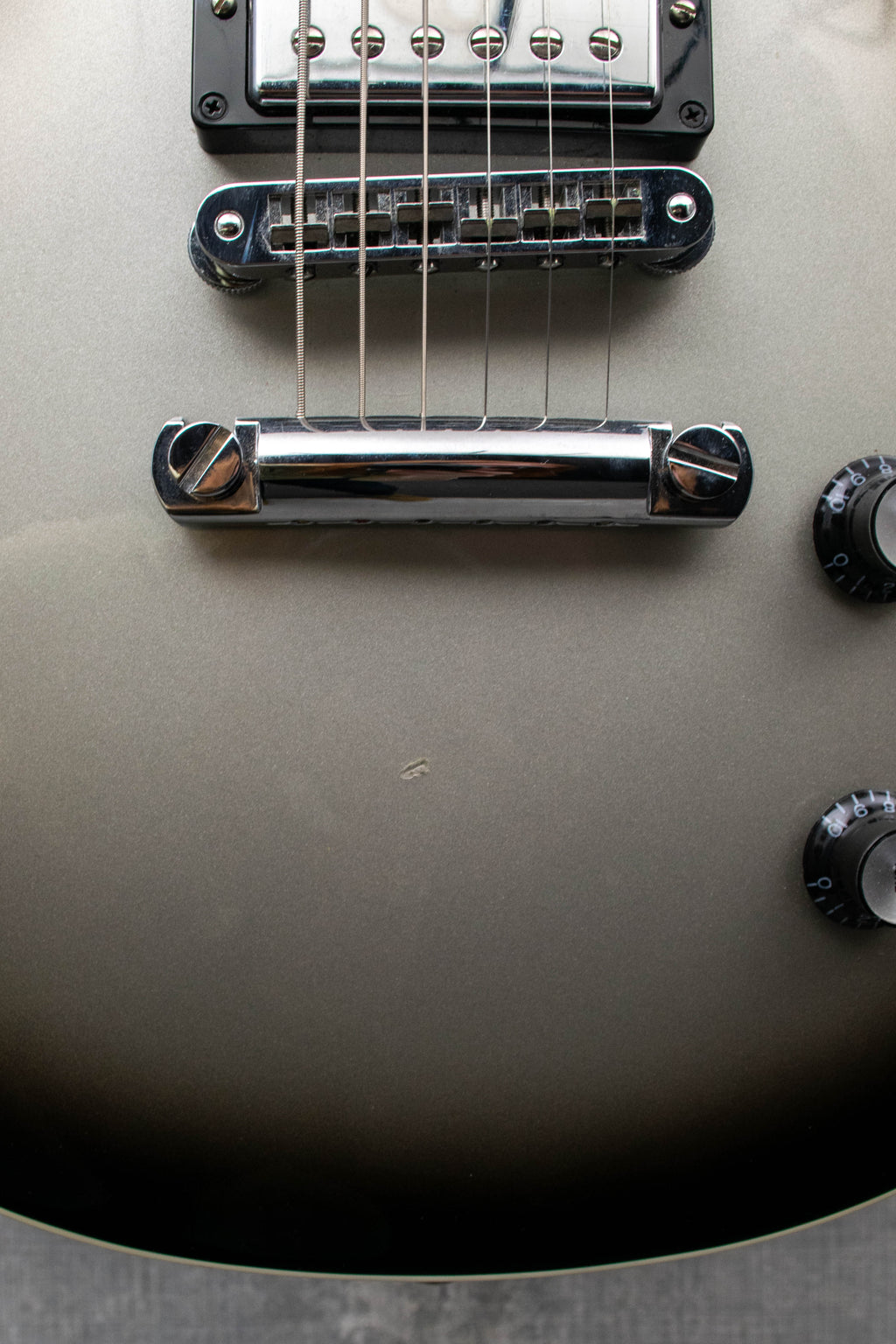 Pre-owned Gibson Les Paul '60's - Silverburst from 2007. A limited Guitar Center run with Gibson. The top shows some light pickmarks and a small ding behind the bridge on the top. The top has some small marks and light indents. The back has some strong buckle rash and marks around the edges, the frets are just starting to show some light wear. Comes with a Gibson harshell case. Light weight and great looking silverburst!
