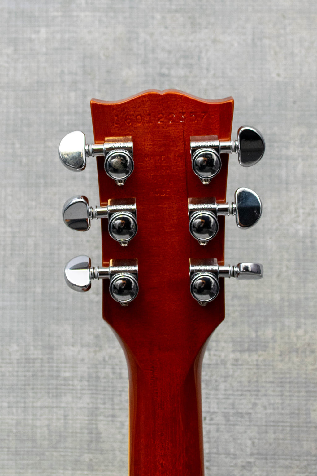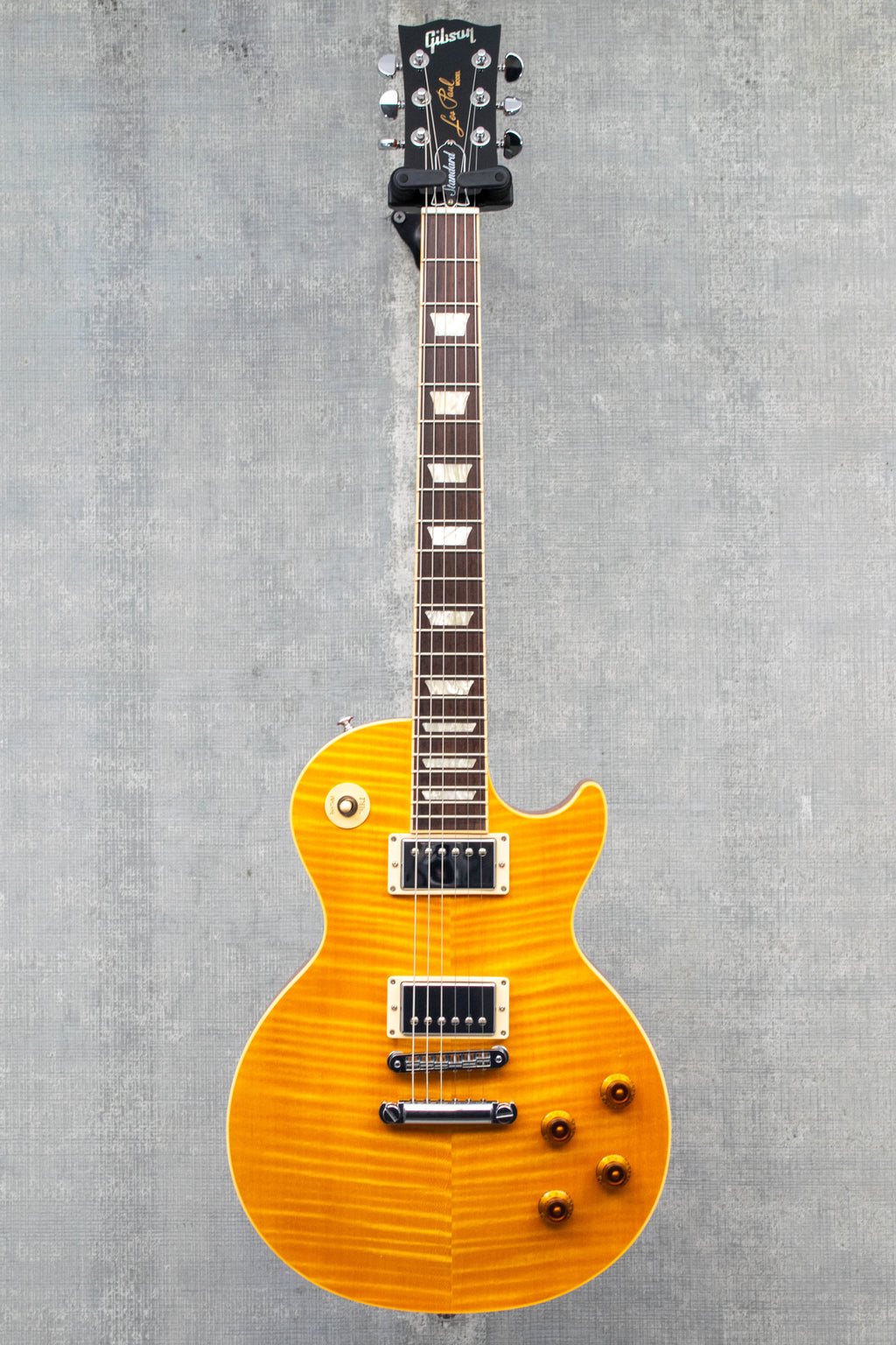 Pre-owned Gibson Les Paul Standard in Trans Amber from 2016. Has a beautiful AAA top! In excellent condition, very little play time or use on this. The original hardshell case, accessories and paperwork are all included. Finish and frets all look like new. Came from a smoker owned household so the guitar and case have a faint odor to it, which may fade over time. Set-up and inspected in house with D'Addario 10's.