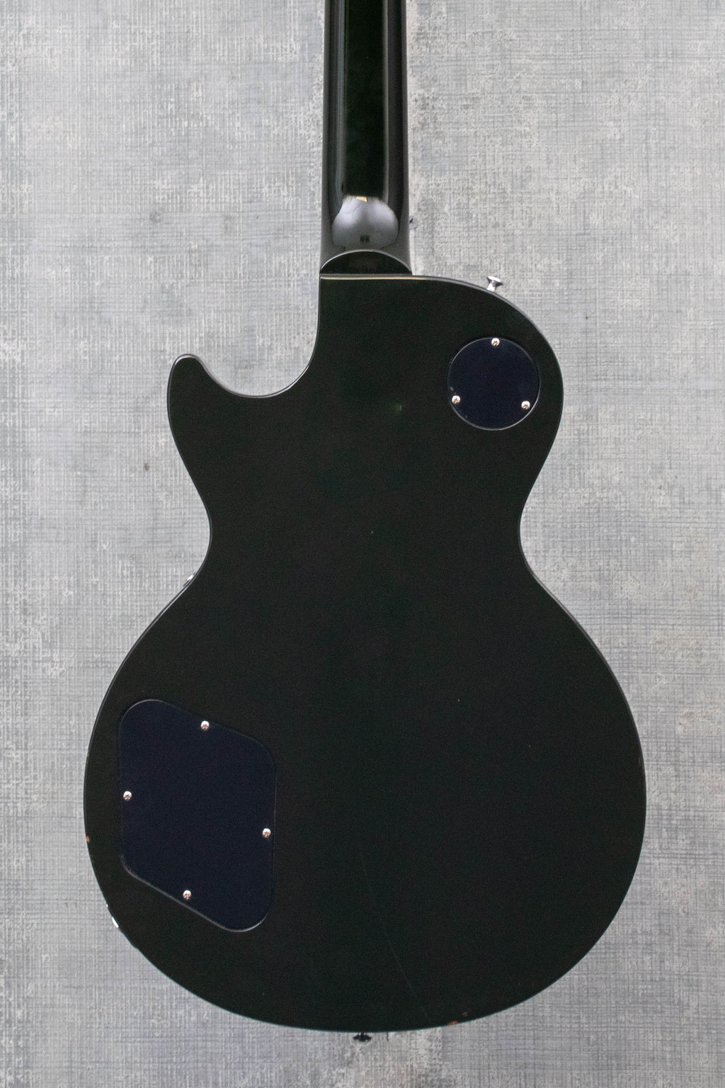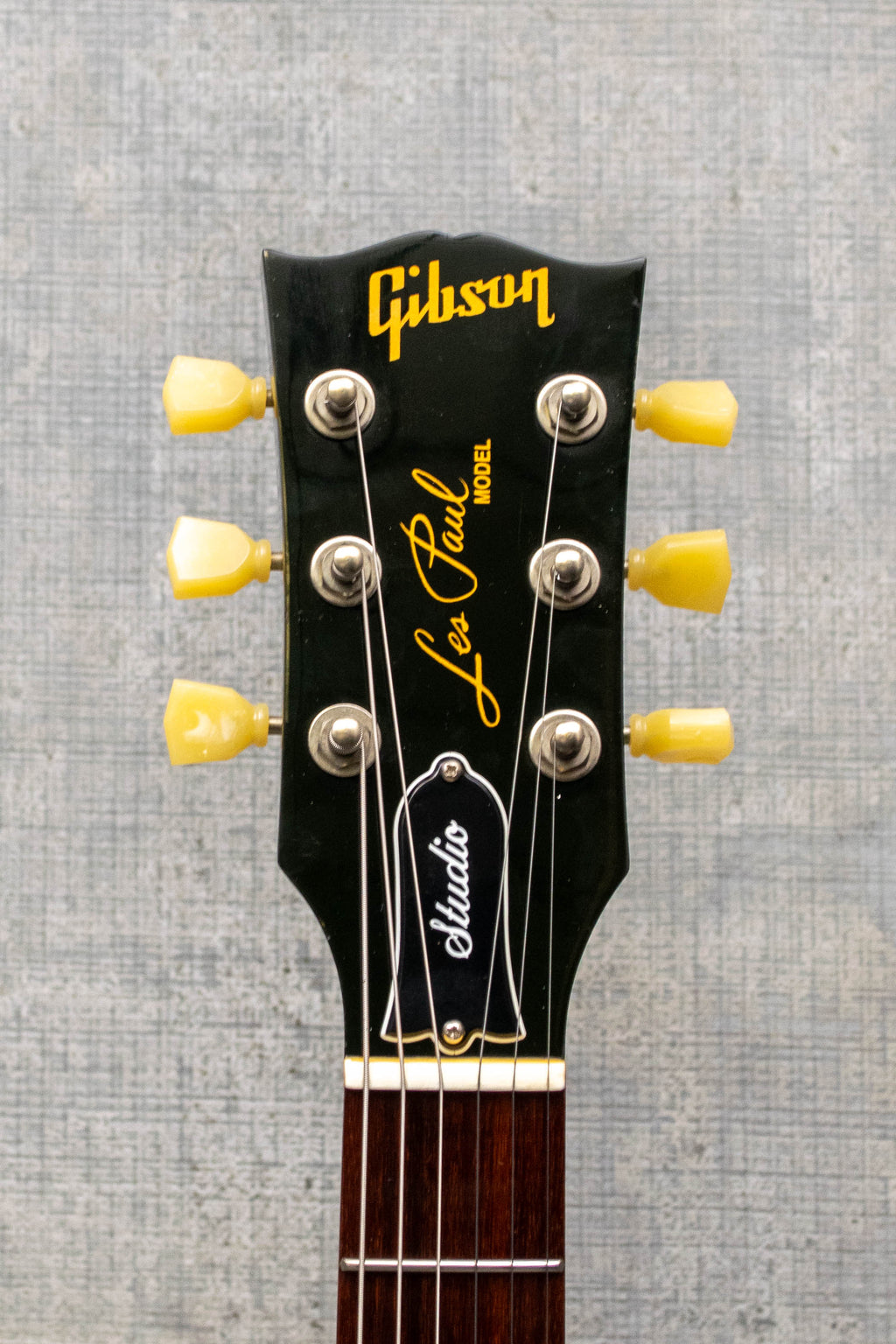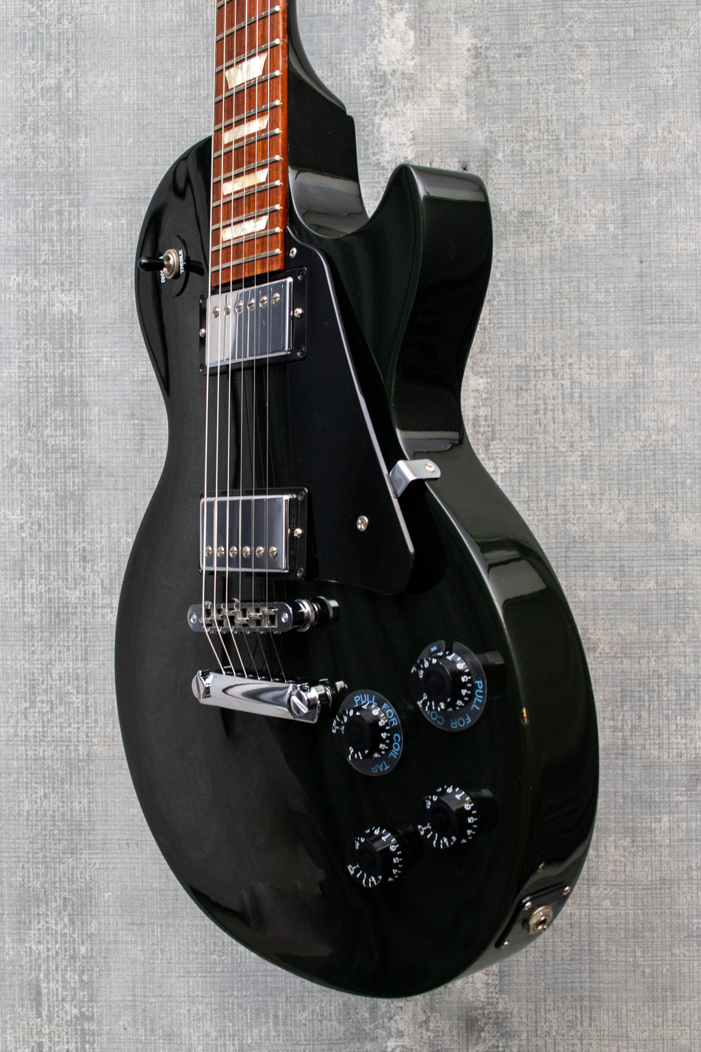 Pre-owned Gibson Les Paul Studio in Ebony from 2012. In good/very good condition, shows light wear from normal use. Three small finish chips on the edges of the body. The back of the neck has one small chip as well. The back has some light surface level scratches and marks. Pickguard and top have some light play scratches and marks, frets look 100%. The original hardshell case, truss rod wrench and paperwork are all included. Came from a smoker owned household so the guitar and case have a faint odor to it, which may fade over time.