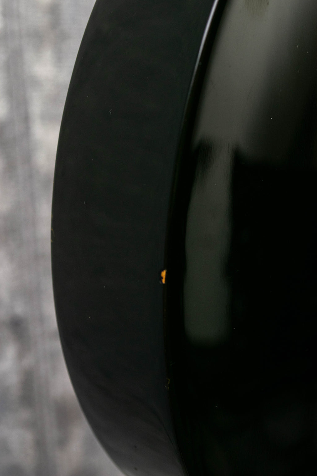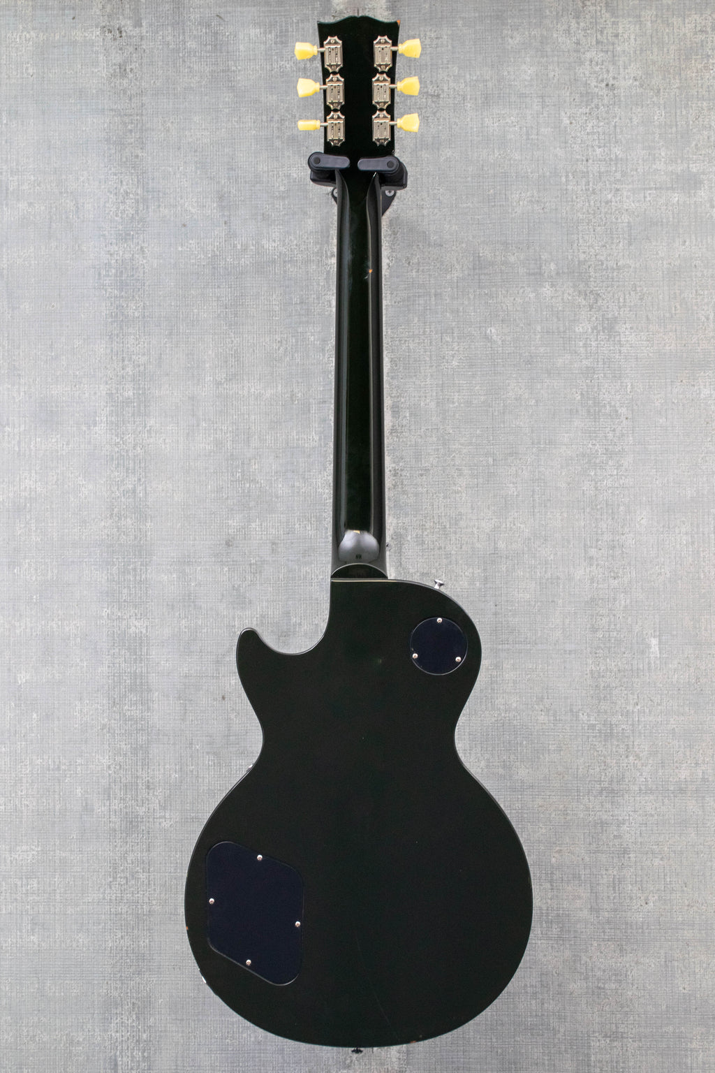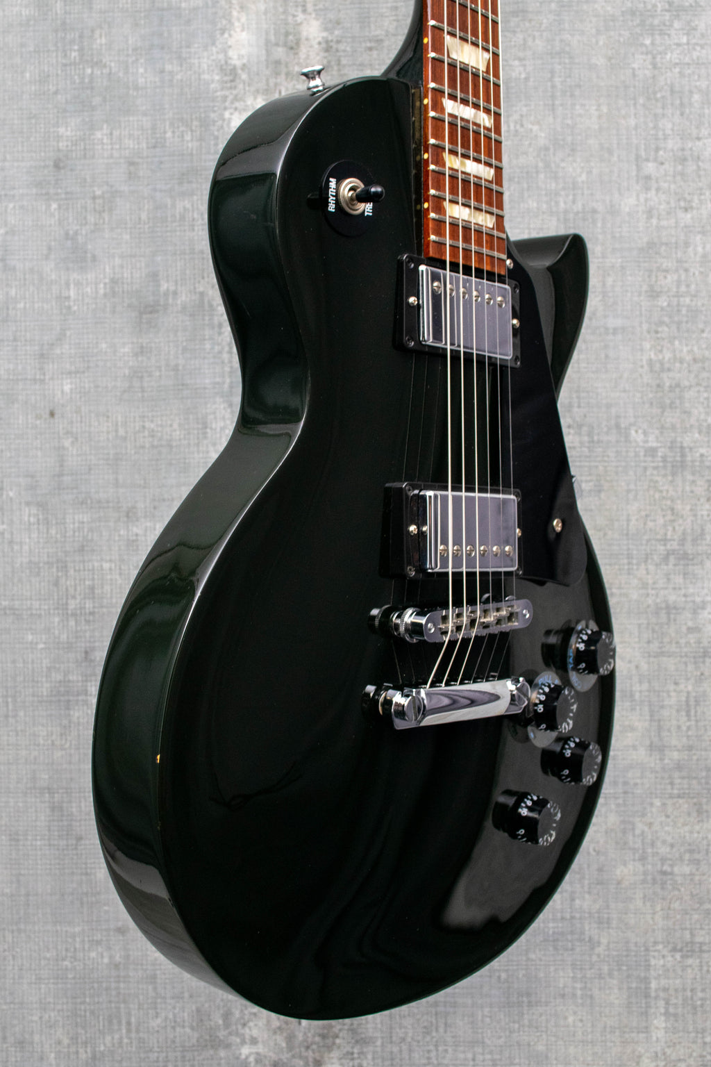 Pre-owned Gibson Les Paul Studio in Ebony from 2012. In good/very good condition, shows light wear from normal use. Three small finish chips on the edges of the body. The back of the neck has one small chip as well. The back has some light surface level scratches and marks. Pickguard and top have some light play scratches and marks, frets look 100%. The original hardshell case, truss rod wrench and paperwork are all included. Came from a smoker owned household so the guitar and case have a faint odor to it, which may fade over time.
