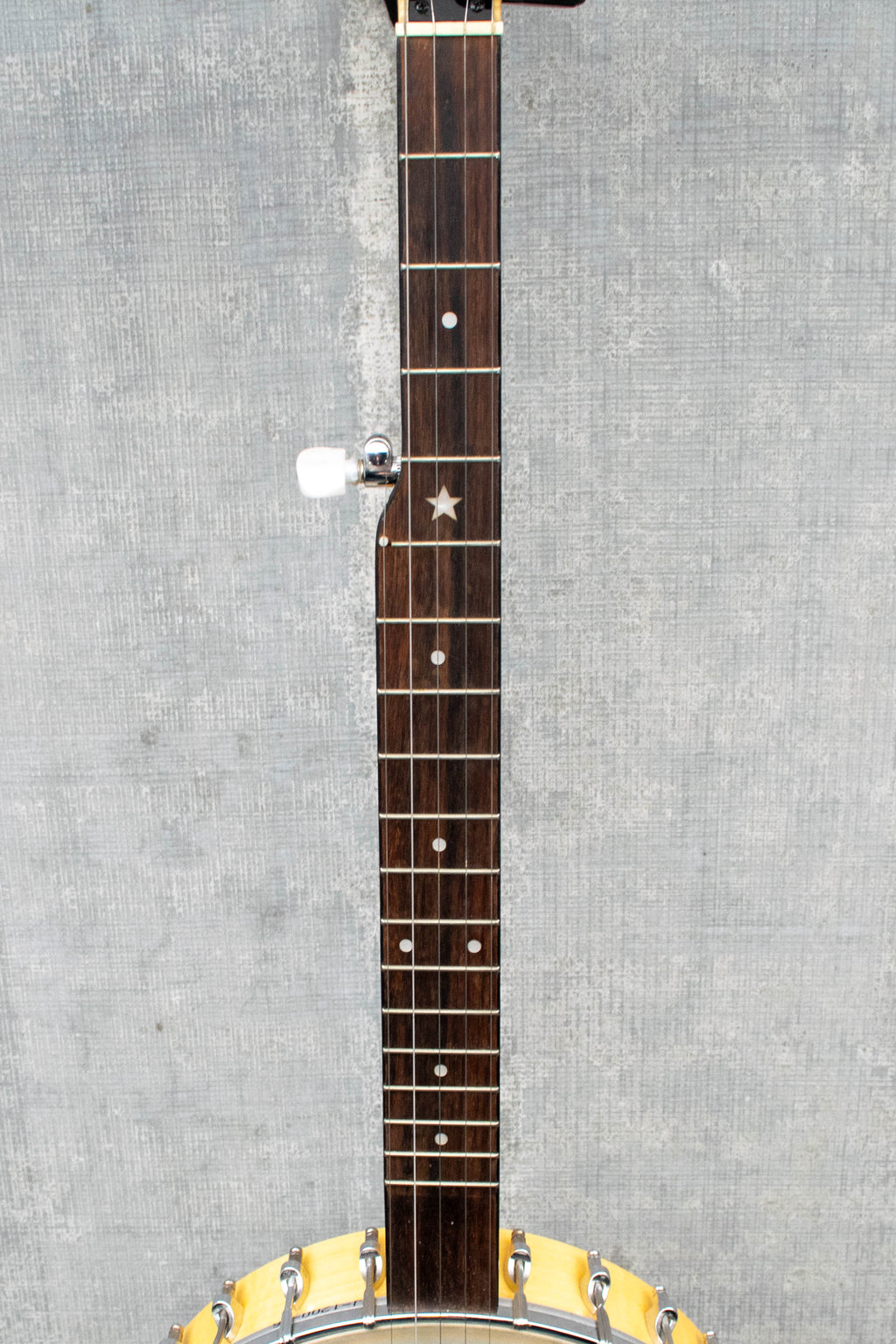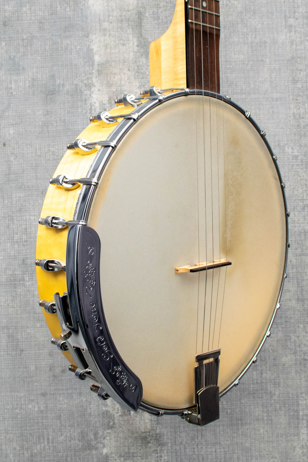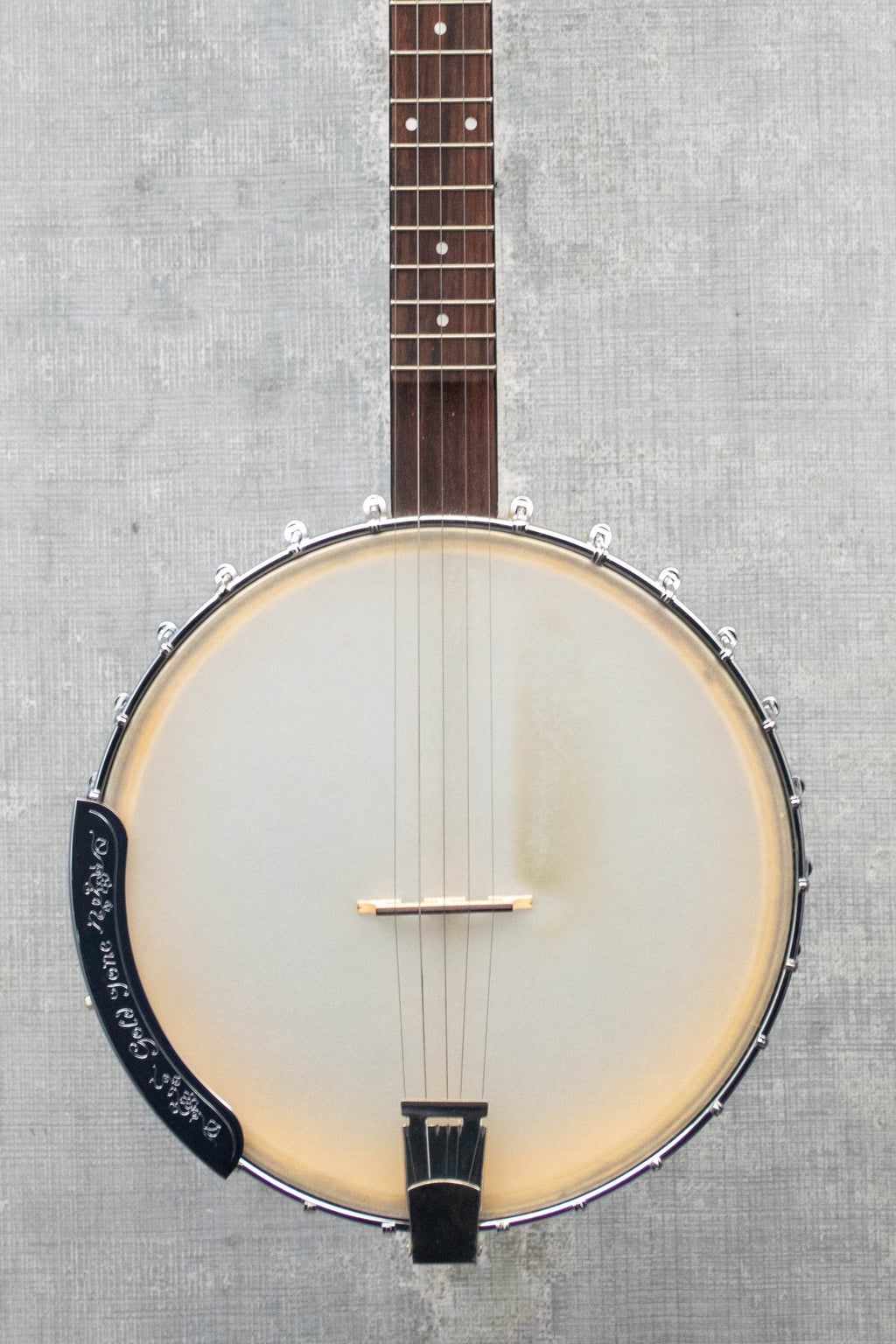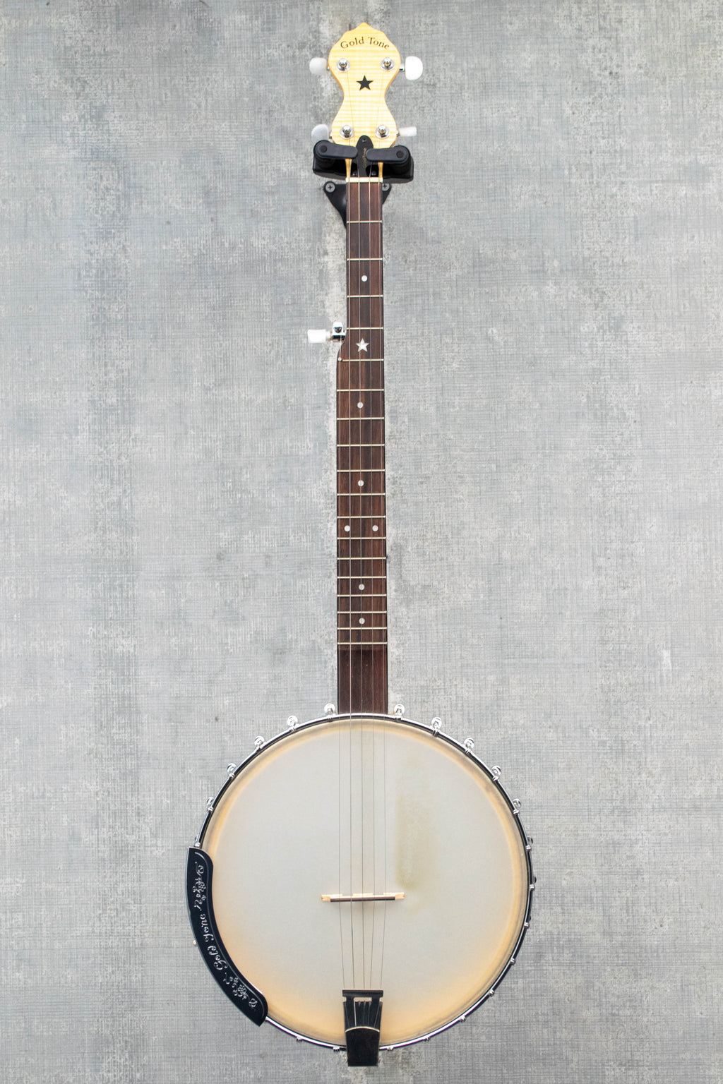 Pre-owned Goldtone CC Carlin 5 String Banjo with gig bag. In very good condition. The neck is straight, action is around 5/64's on the outside strings. Comes with the original gig bag and wrench. 6lbs