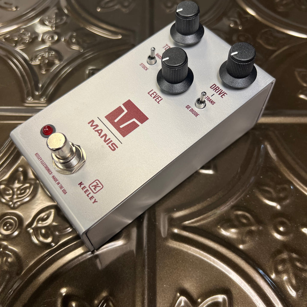The Keeley Manis Overdrive uniquely combines both germanium NOS transistors and diodes for more compression and saturation plus a 3db bass-boost makes it unlike any other mythical Klone!
