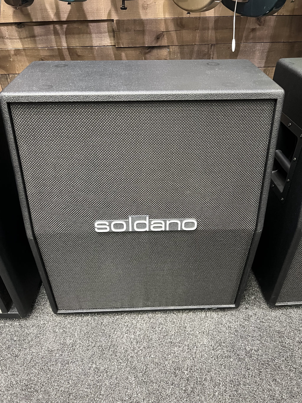 Pre-owned Soldano 2x12 vertical speaker cabinet. In like new condition, little to no signs of wear, original boxes are included.