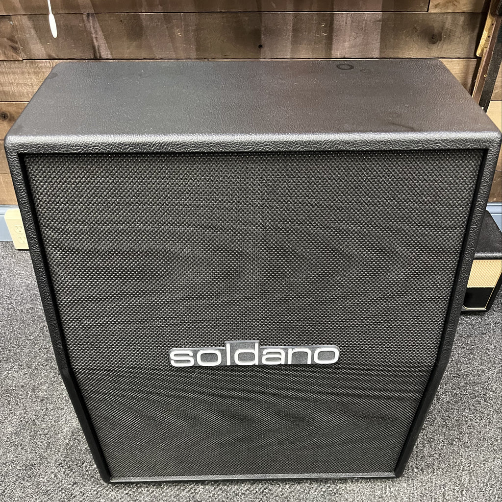 Pre-owned Soldano 2x12 vertical speaker cabinet. In like new condition, little to no signs of wear, original boxes are included.
