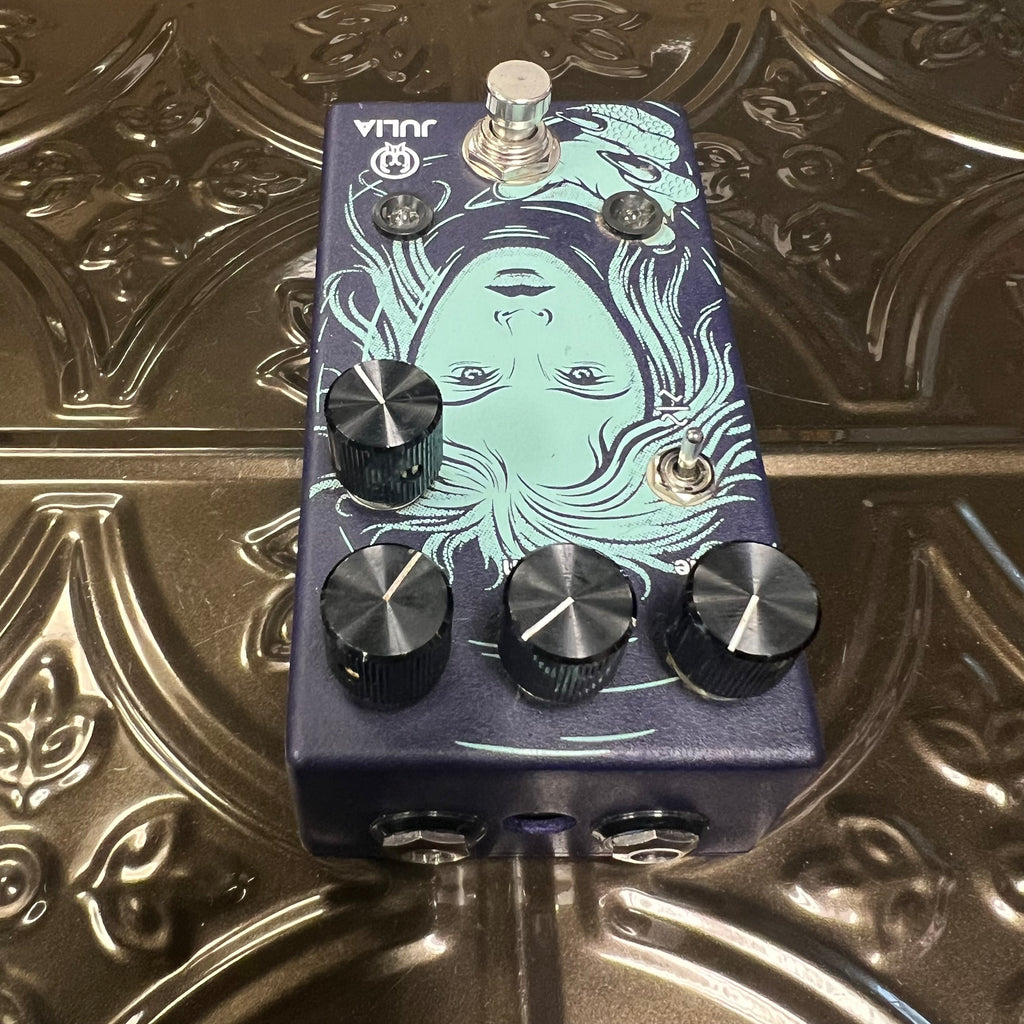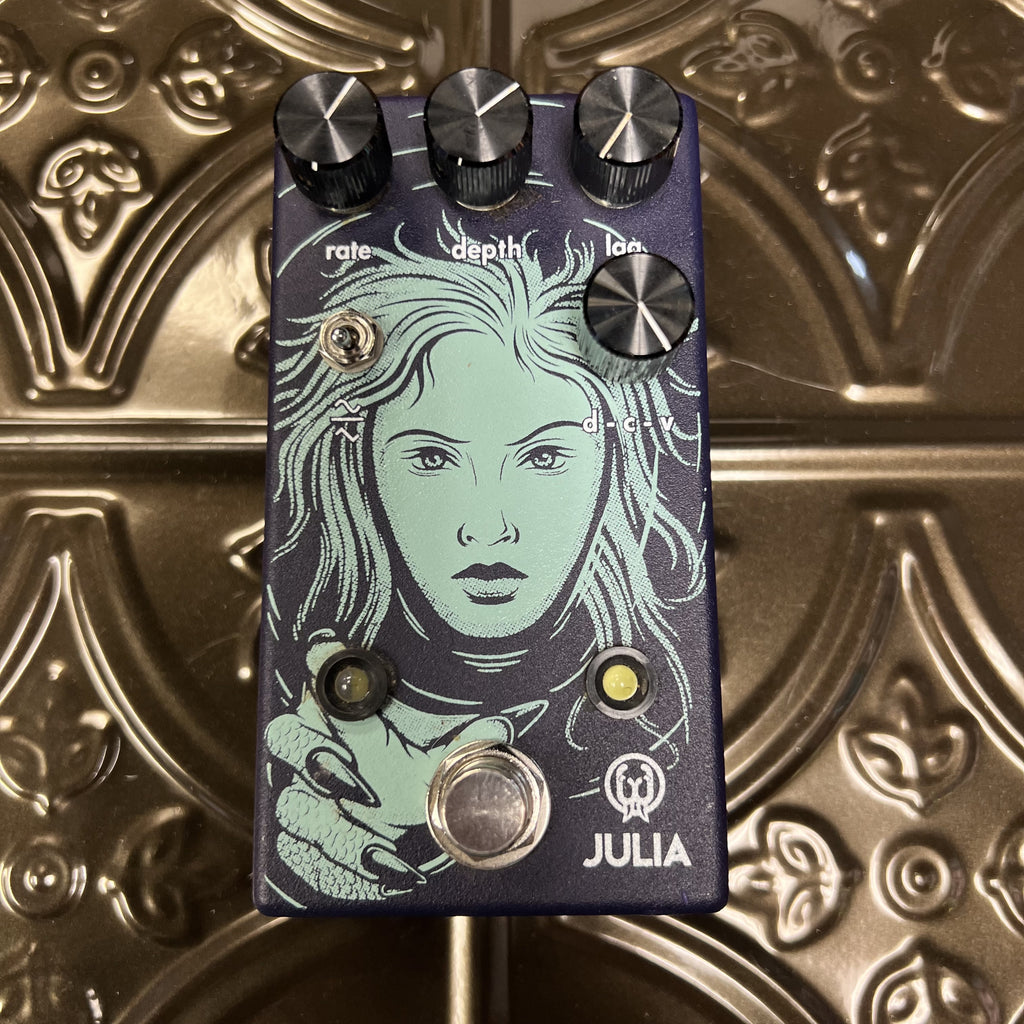 The Julia is a fully analog, feature-rich chorus/vibrato packed with a wide array of tonal landscapes begging to be explored. Updated for 2020, Julia now has top mounted jacks, soft switch bypassing and updated art from Adam Forster.