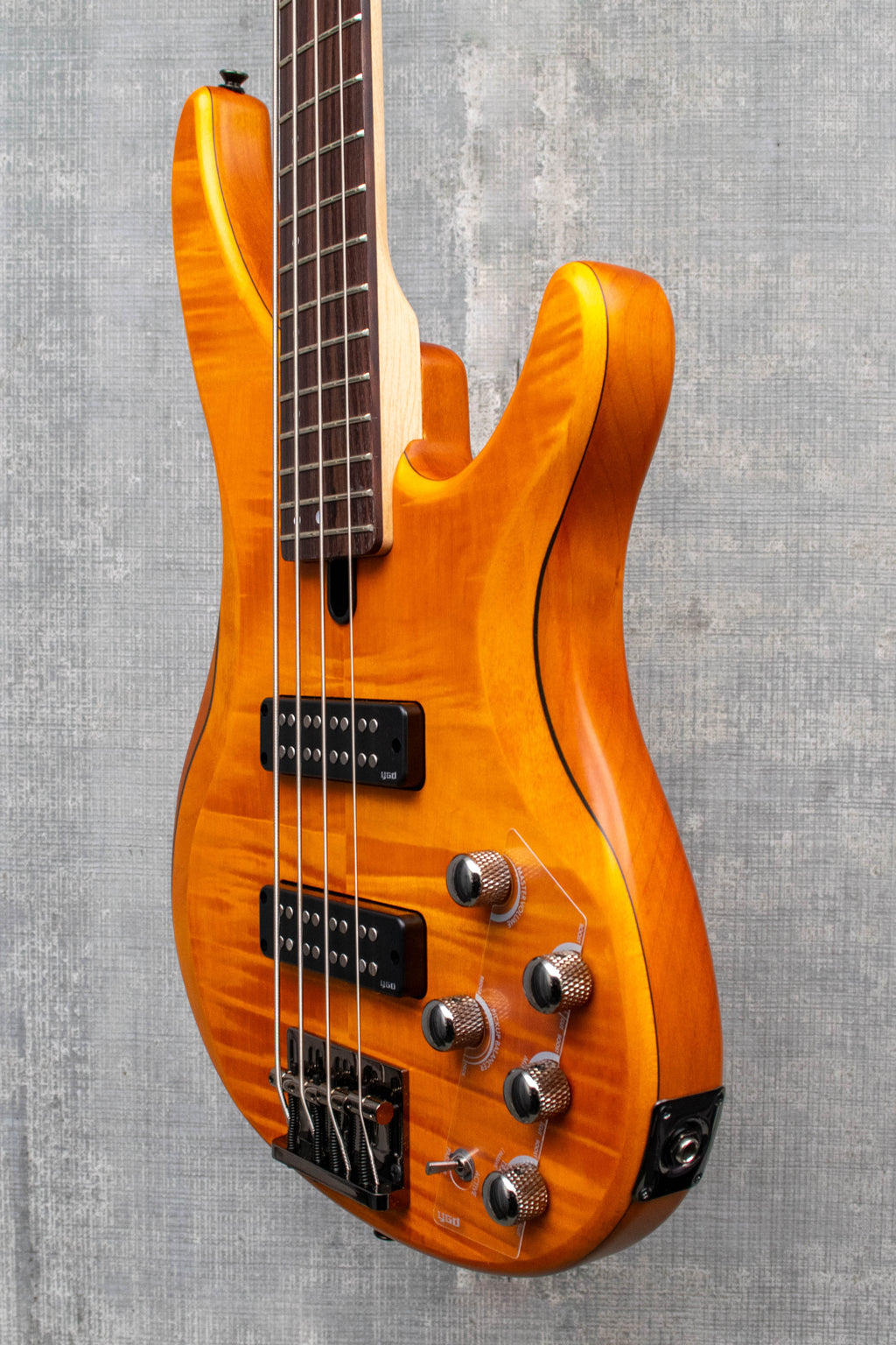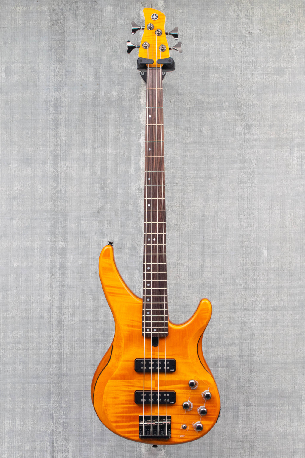 Yamaha TRBX604 Flamed Maple, Matte Amber 4 String Bass Guitar.